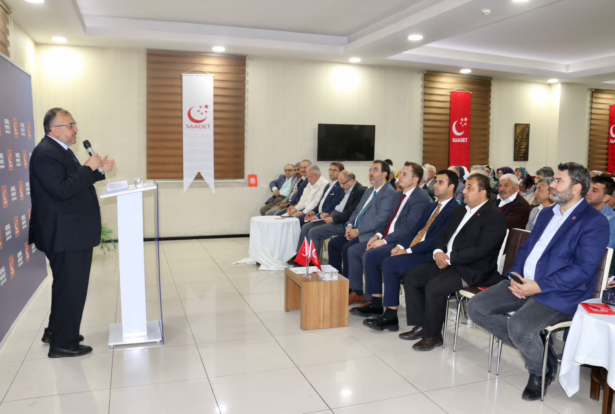 İl Başkanı Beytullah Karataş yaptığı açılış konuşmasında Saadet Partisi olarak 50 yılı aşkın süredir en büyük gücümüzün hedefine odaklanmış, kapı kapı dolaşan, şehrimizin tüm kesimlerinin sorunlarıyla ilgilenen, her çalışmasında nezaket, samimiyet ve kararlılıkla adım atan bir teşkilat yapımız olduğunun farkındayız. Önümüzdeki yerel seçimlere Afyonkarahisarda tüm belediyelerde adaylarımızla ve teşkilatımızla güçlü bir şekilde hazırlanıyoruz. dedi.