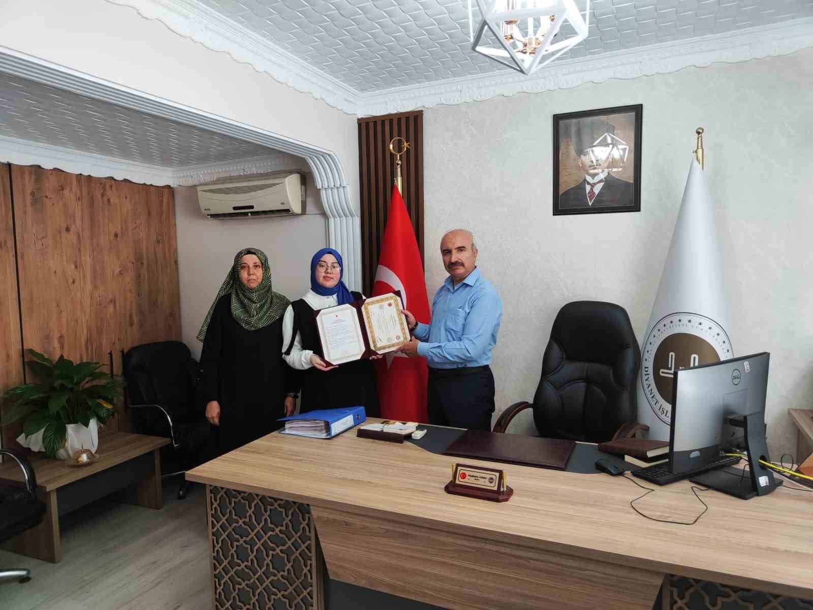 "Hafızlık Eğitimini Tamamlayan Furkan Kırlı'ya Belge Verildi"