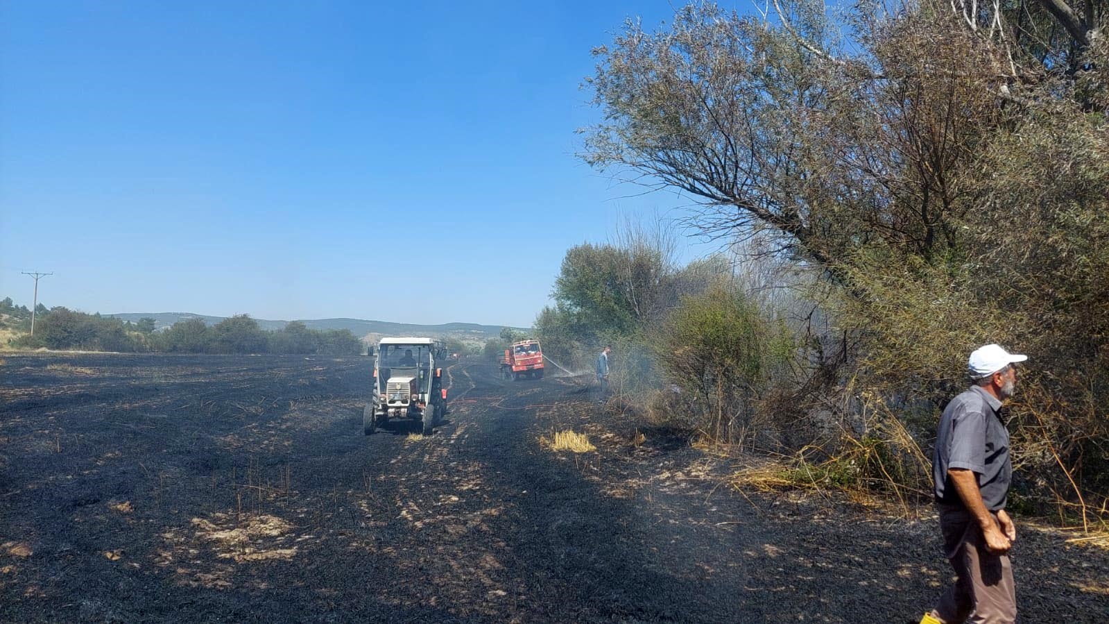 Atmacanın Elektrik Akımına Kapılmasıyla Çıkan Yangında 60 Dönüm Tarla Zarar Gördü